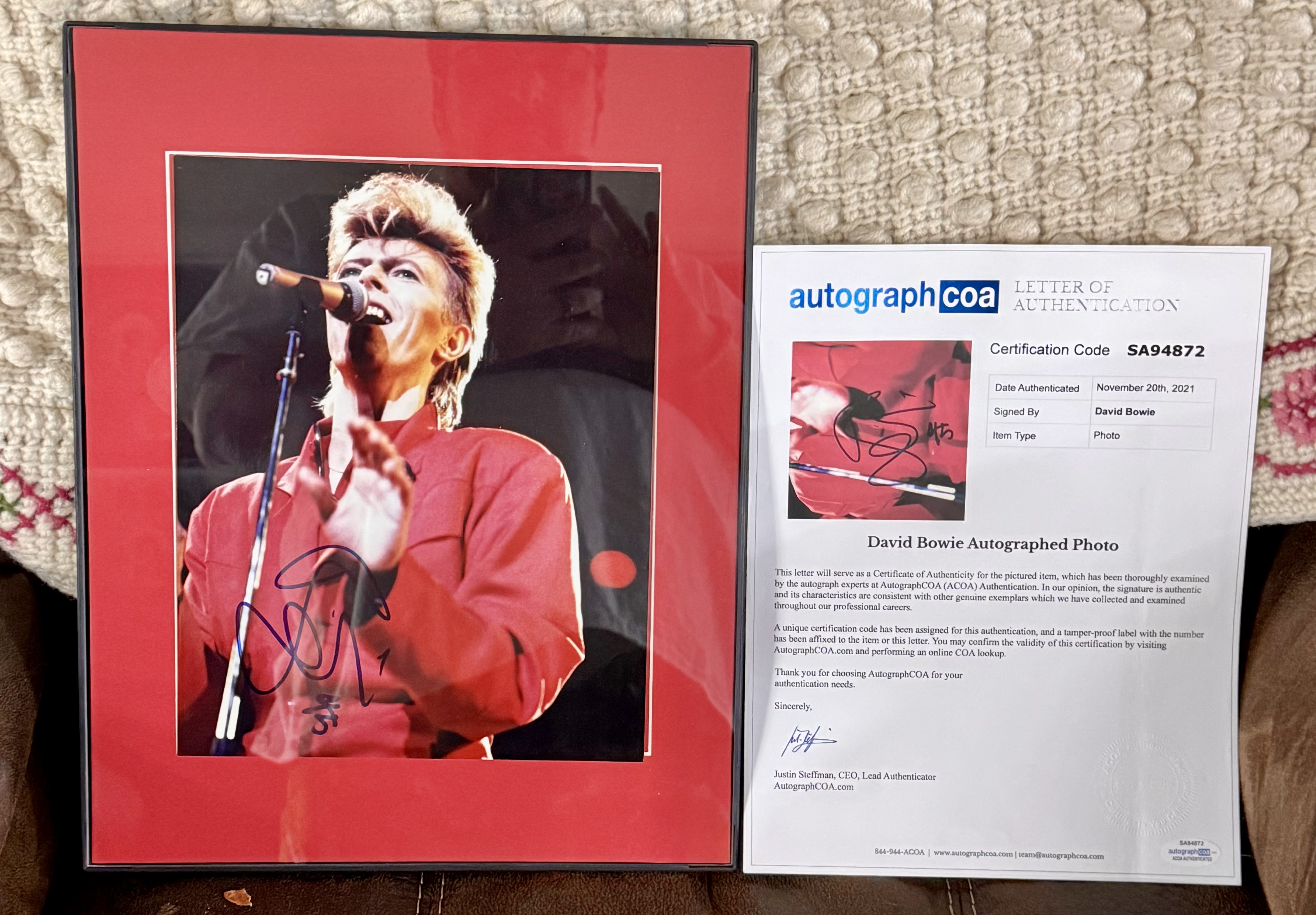 David Bowie autograph received as described and prompt shipping thanks! Why people were trying to lowball Andy on this piece I have no idea. He answered my questions at length and after I felt I had enough information, we moved forward and closed the deal. Thank you again! 😊